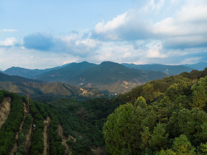 Phoenix Mountain, Chaozhou – In tegenstelling tot typische theeplantages, waar laagblijvende struiken in grote hoeveelheden worden geplant voor uniforme bladeren, is de thee van Phoenix Mountain afkomstig van eeuwenoude theebomen, die stuk voor stuk met zorg worden gekweekt. Elke boom groeit op een hoogte van ongeveer 1000 meter en weerspiegelt een unieke combinatie van hoogte, microklimaat, bodem en eeuwenoude natuurlijke essentie. De zorgvuldige handmatige teelt levert thee op met een gelaagde complexiteit, een rijk aroma en een diep karakter. Na 36 uur langzaam roosteren ontwikkelt de thee een zacht, warm mondgevoel met een subtiel geroosterd aroma, wat de kenmerkende smaak van Phoenix Mountain oolong creëert.